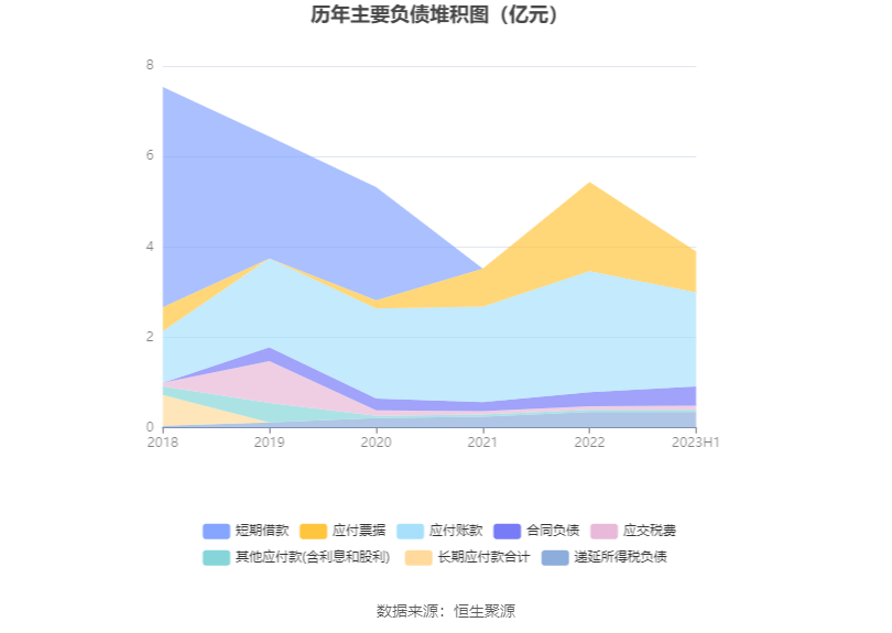 负债重大变化方面,截至2023年二季度末,公司应付账款较上年末减少22.32%,占公司总资产比重下降1.71个百分点;合同负债较上年末增加38.81%,占公司总资产比重上升0.57个百分点;其他流动负债较上年末减少9.75%,占公司总资产比重下降0.01个百分点;一年内到期的非流动负债较上年末减少2.13%,占公司总资产比重不变。