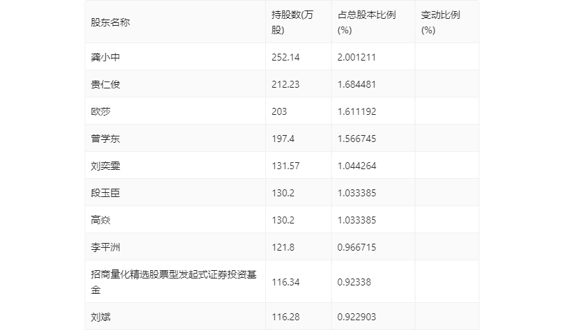 半年报显示,2023年上半年末的公司十大流通股东中,新进股东为欧莎、招商量化精选股票型发起式证券投资基金,取代了一季度末的罗文姗、苏文良。在具体持股比例上,贵仁俊、刘奕雯、段玉臣、刘斌持股有所下降。