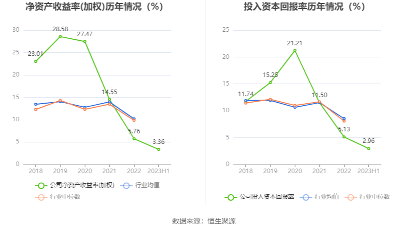 数据显示,2023年上半年公司加权平均净资产收益率为3.36%,较上年同期增长0.87个百分点;公司2023年上半年投入资本回报率为2.96%,较上年同期增长0.77个百分点。