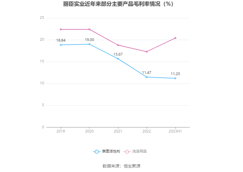 分产品看,表面活性剂、洗涤用品2023年上半年毛利率分别为11.20%、20.41%。