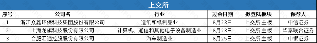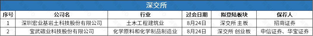 8月21日-8月27日,上交所主板有3家公司过会;深交所主板有1家公司过会,创业板有1家公司过会。