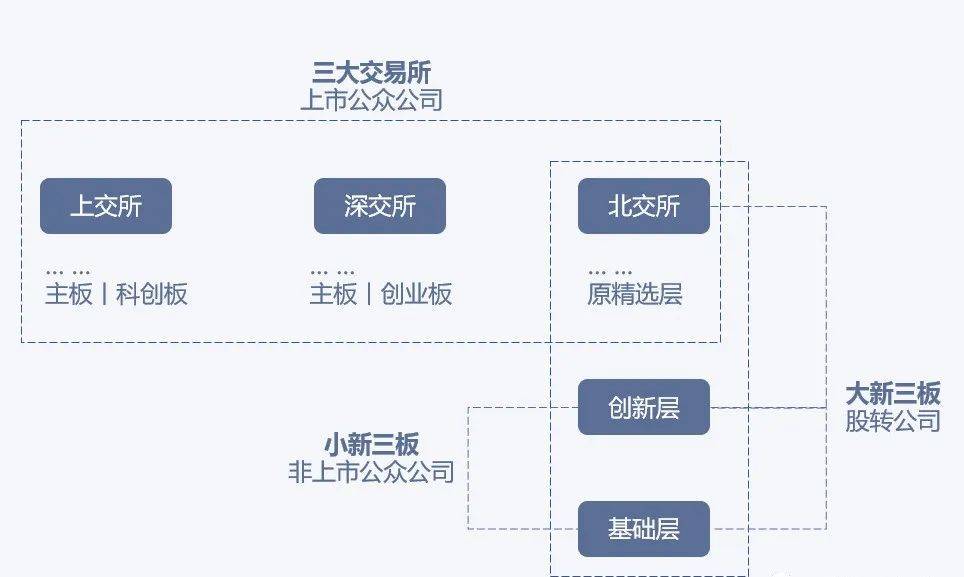 大新三板(股转系统公司)大就大在包括了北交所,而上交所、深交所是在交易所下面包括了不同“板”(主板、创业板、科创板)。