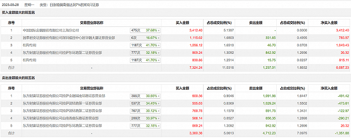 具体来看,机构买入1926.98万元,卖出62.44万元,合计净买入1864.54万元。此外,中国国际金融上海分公司、国泰君安证券深圳福田中心区华融大厦证券营业部分别买入3412.40万元、1115.62万元;东方财富证券拉萨金融城南环路证券营业部、东方财富证券拉萨团结路第一证券营业部分别卖出1091.98万元、1029.24万元。