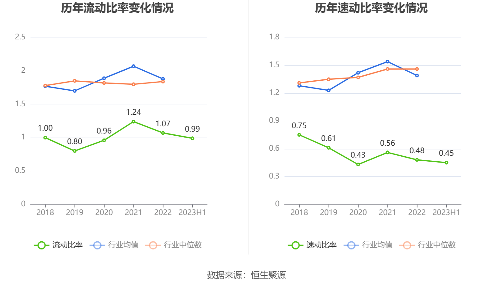 2023年上半年,公司流动比率为0.99,速动比率为0.45。