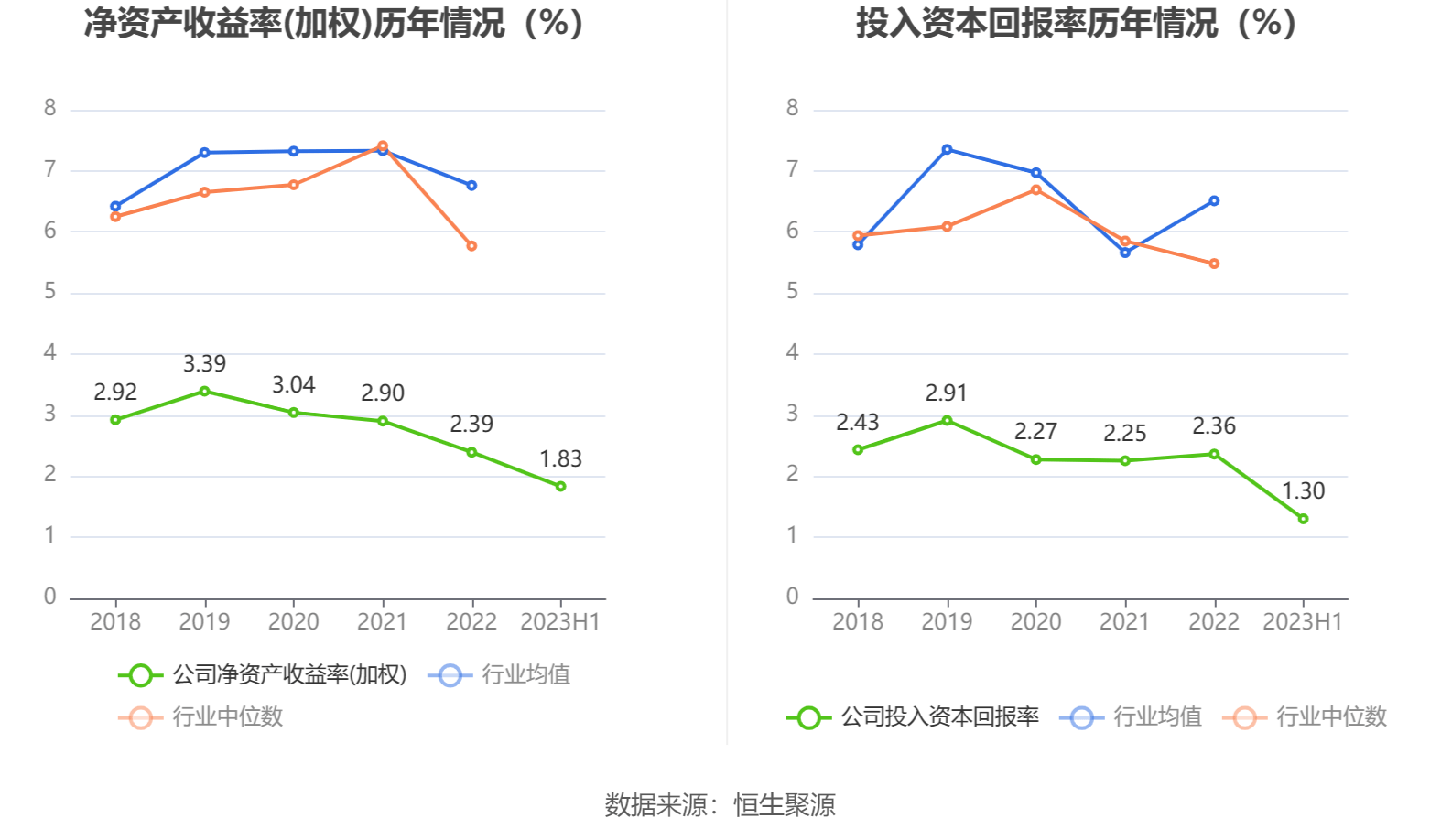 数据显示,2023年上半年公司加权平均净资产收益率为1.83%,较上年同期增长1.81个百分点;公司2023年上半年投入资本回报率为1.30%,较上年同期增长0.41个百分点。