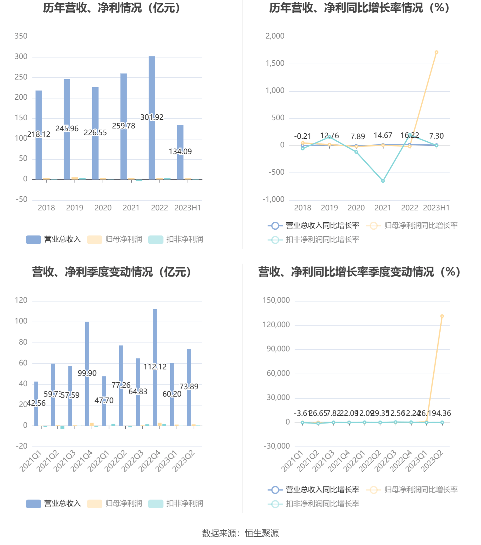 根据半年报,公司第二季度实现营业总收入73.89亿元,同比下降4.36%,环比增长22.75%;归母净利润1.5亿元,同比增长131189.45%,环比增长16.07%;扣非净利润4185.52万元,同比增长132.84%,环比增长45.49%。