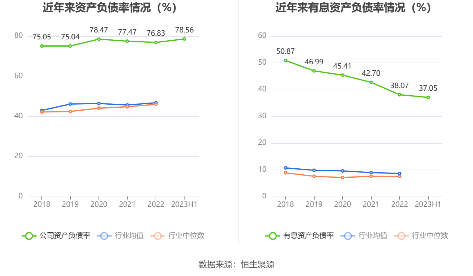 偿债能力方面,公司2023年二季度末资产负债率为78.56%,相比上年末增加1.73个百分点;有息资产负债率为37.05%,相比上年末减少1.02个百分点。
