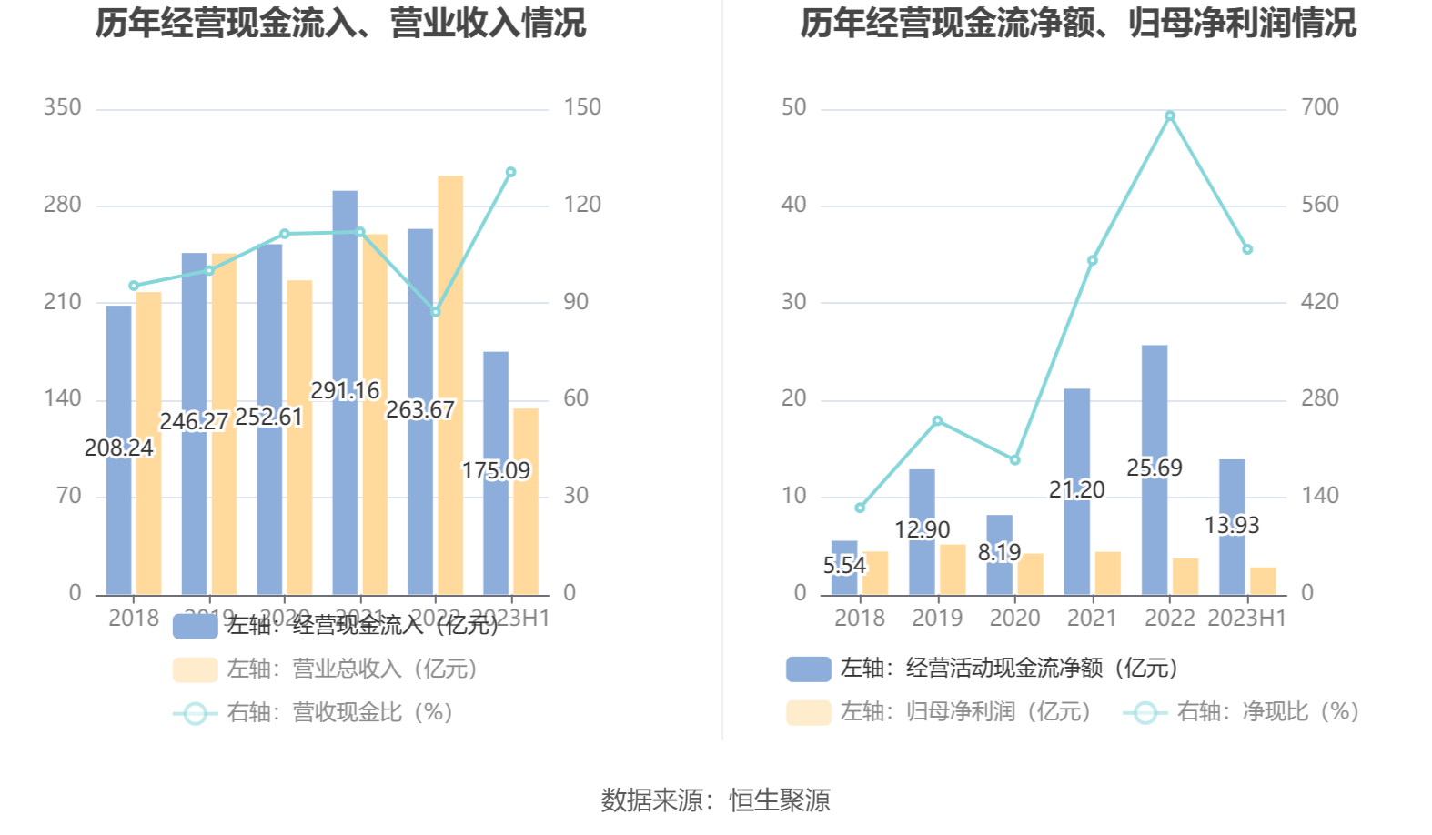 2023年上半年,公司营业收入现金比为130.58%,净现比为497.82%。