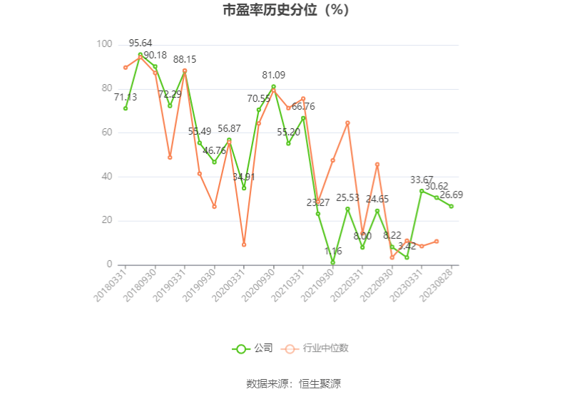 市盈率为负时,不显示当期分位数,会导致折线图中断。