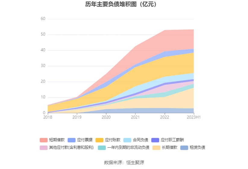负债重大变化方面,截至2023年二季度末,公司长期借款较上年末增加88.01%,占公司总资产比重上升6.46个百分点;短期借款较上年末减少9.02%,占公司总资产比重下降1.84个百分点;一年内到期的非流动负债较上年末减少17.09%,占公司总资产比重下降0.69个百分点;应付账款较上年末增加2.68%,占公司总资产比重下降0.09个百分点。