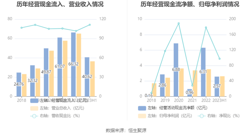 2023年上半年,公司营业收入现金比为111.48%,净现比为97.78%。