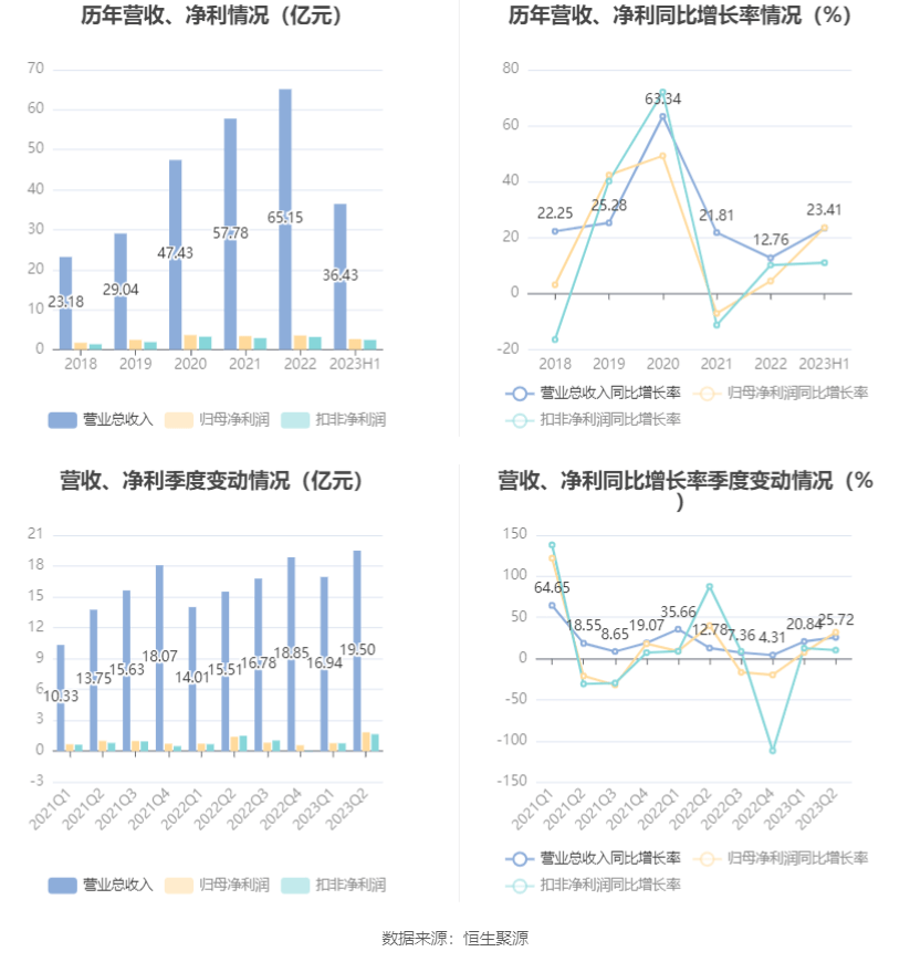 根据半年报,公司第二季度实现营业总收入19.5亿元,同比增长25.72%,环比增长15.13%;归母净利润1.84亿元,同比增长31.97%,环比增长135.28%。