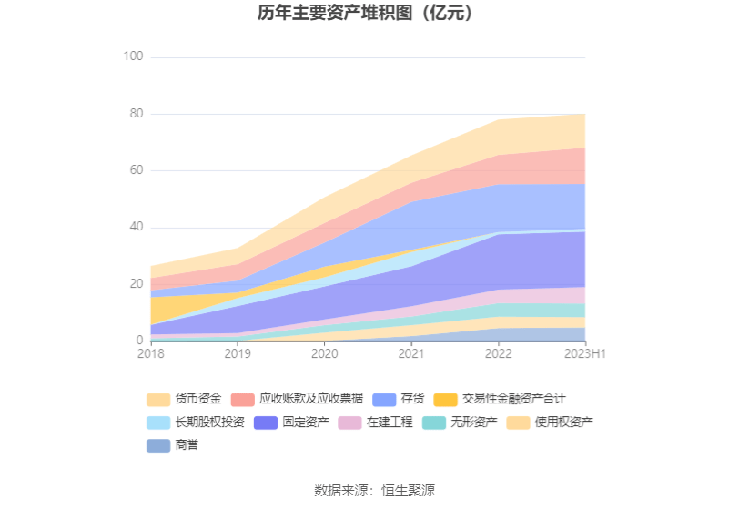资产重大变化方面,截至2023年二季度末,公司应收账款较上年末增加23.34%,占公司总资产比重上升2.24个百分点;存货余额较上年末减少5.15%,占公司总资产比重下降1.57个百分点;货币资金余额较上年末减少4.25%,占公司总资产比重下降1.03个百分点;在建工程较上年末增加22.34%,占公司总资产比重上升0.97个百分点。