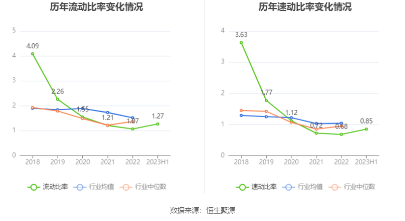 2023年上半年,公司流动比率为1.27,速动比率为0.85。