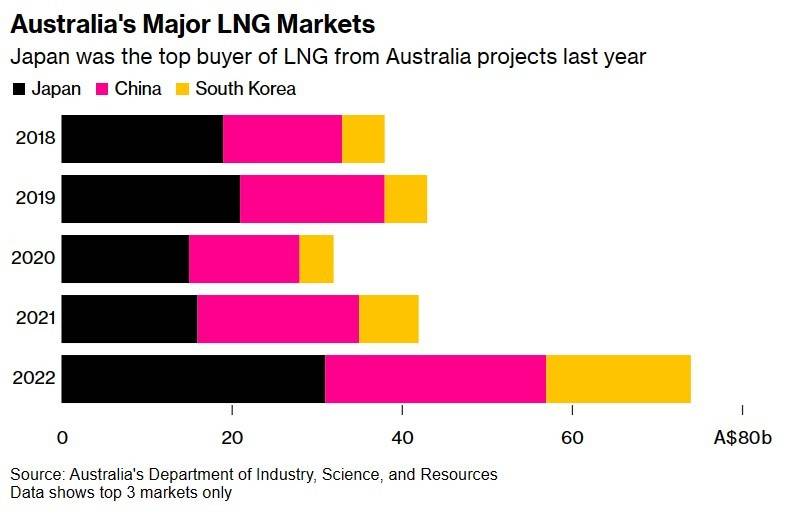 澳大利亚的主要液化天然气市场——去年,日本是澳大利亚液化天然气最大买家