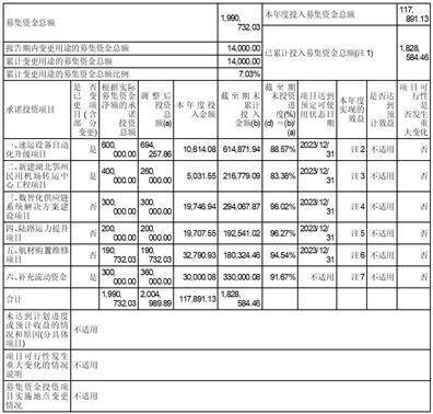 注1 “本年度投入金额”包括募集资金到账后累计投入募集资金金额及实际已置换先期投入金额633,845.85万元。