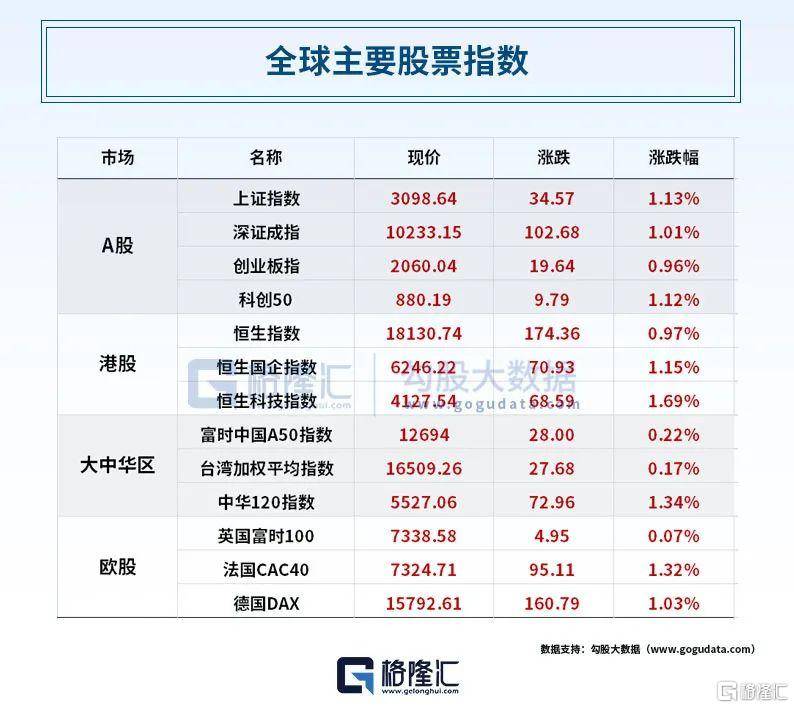 美股方面,三大股指集体上涨,连续第二个交易日上涨,中概股表现强于大盘,道指涨0.62%,纳指涨0.84%,标普涨0.63%。