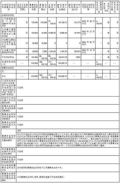 募集资金使用情况对照表