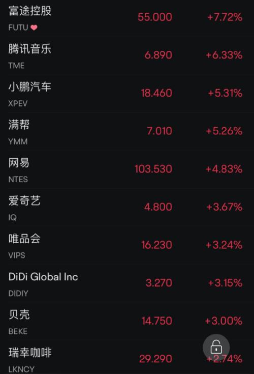 热门中概股多数收涨,优信涨18.88%,宝尊电商涨12.47%,叮咚买菜涨10.51%,虎牙直播涨9.96%,微博涨7.93%,阿里巴巴涨2.71%,京东涨2.58%,百度涨2.58%;优点互动跌19.07%,普普文化跌8.47%,亿邦通信跌6.71%,百世集团跌5.61%。