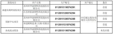 根据《上市公司监管指引第2号一一上市公司募集资金管理和使用的监管要求》《上海证券交易所科创板上市公司自律监管指引第1号一一规范运作》及公司《募集资金管理办法》等相关规定和要求,为规范公司募集资金管理,保护投资者权益,公司及全资子公司世晨材料技术(上海)有限公司、江苏世拓新材料科技有限公司在中信银行股份有限公司苏州分行开立了募集资金专户。2023年6月9日,公司及全资子公司世晨材料技术(上海)有限公司、江苏世拓新材料科技有限公司与保荐机构、募集资金专户监管银行签订了《募集资金专户存储三方监管协议》,对募集资金进行专款专用。开立的募集资金专用账户情况如下: