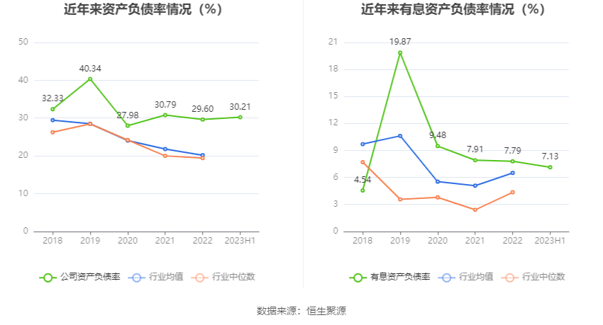 偿债能力方面,公司2023年二季度末资产负债率为30.21%,相比上年末增加0.61个百分点;有息资产负债率为7.13%,相比上年末减少0.66个百分点。