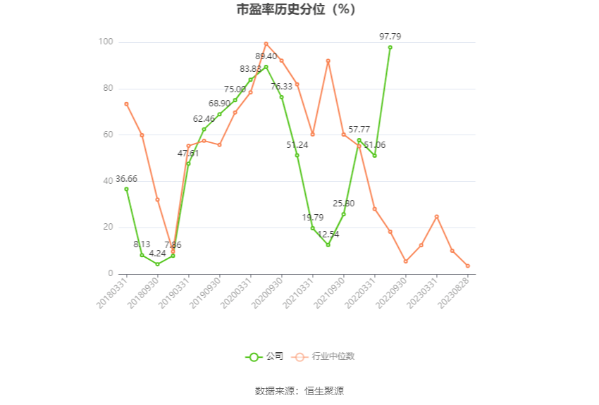 市盈率为负时,不显示当期分位数,会导致折线图中断。