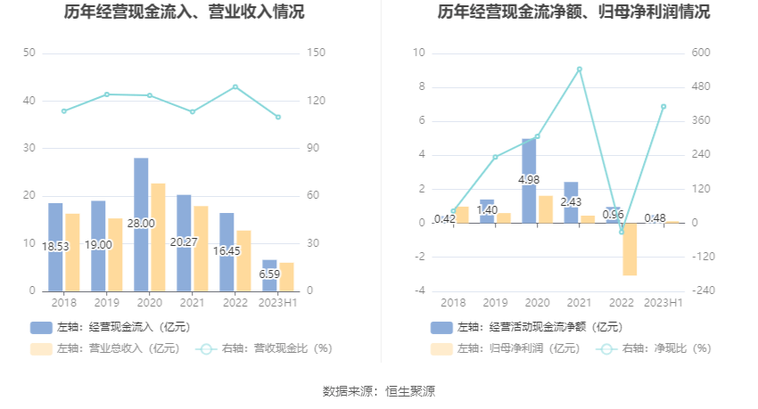 2023年上半年,公司营业收入现金比为109.86%,净现比为412.70%。
