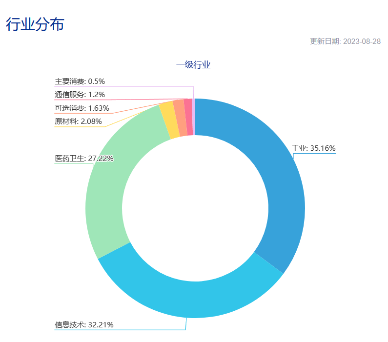 从行业分布来看,主要集中在信息技术、工业这两大一级行业,累计占比超过85%,医药卫生、原材料、可选消费和主要消费的累计占比未超过15%。