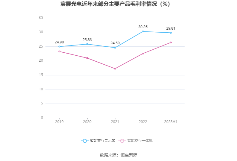 分产品看,智能交互显示器、智能交互一体机2023年上半年毛利率分别为29.81%、26.42%。
