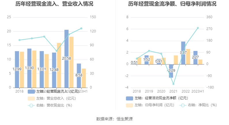 2023年上半年,公司营业收入现金比为126.55%,净现比为279.32%。