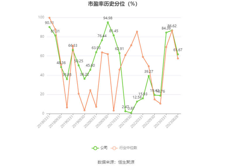 市盈率为负时,不显示当期分位数,会导致折线图中断。