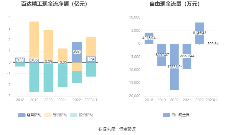 进一步统计发现,2023年上半年公司自由现金流为-309.64万元,上年同期为-2139.25万元。