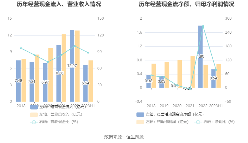 2023年上半年,公司营业收入现金比为88.82%,净现比为78.50%。