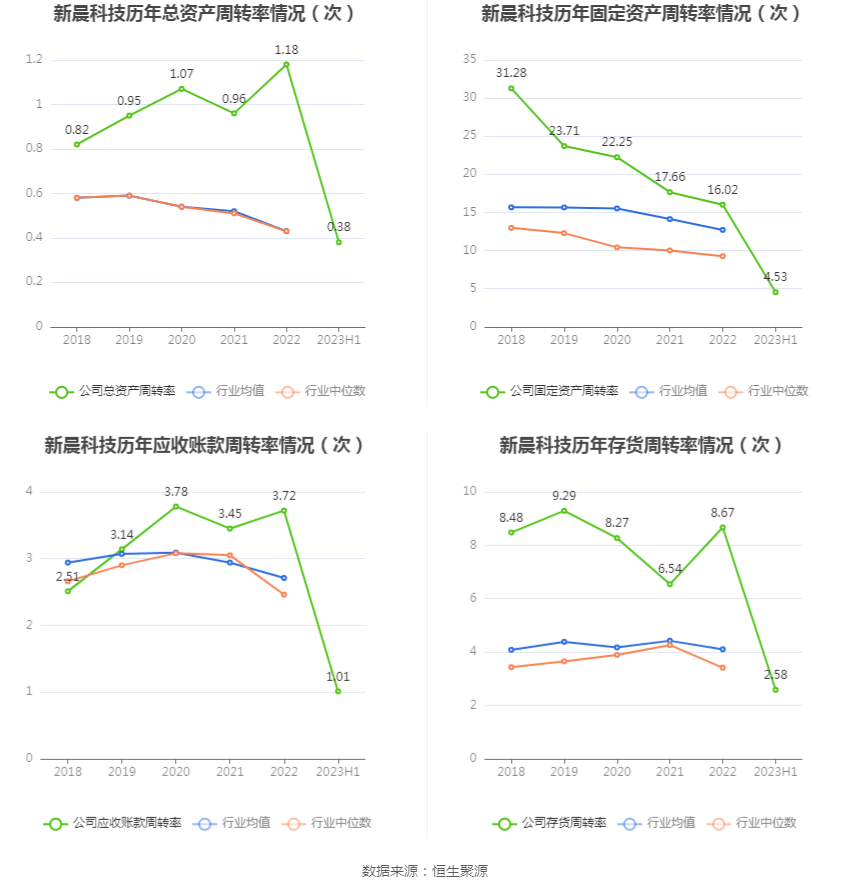 营运能力方面,2023年上半年,公司总资产周转率为0.38次,上年同期为0.46次(2022年上半年行业平均值为0.18次,公司位居同行业7/102);固定资产周转率为4.53次,上年同期为8.07次(2022年上半年行业平均值为5.24次,公司位居同行业32/102);公司应收账款周转率、存货周转率分别为1.01次、2.58次。