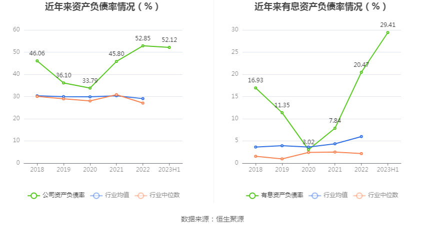 偿债能力方面,公司2023年二季度末资产负债率为52.12%,相比上年末减少0.73个百分点;有息资产负债率为29.41%,相比上年末增加8.94个百分点。