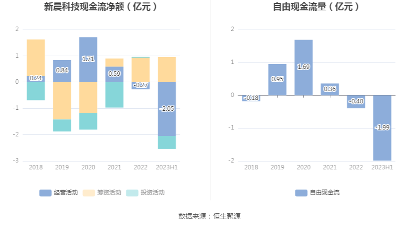 进一步统计发现,2023年上半年公司自由现金流为-1.99亿元,上年同期为-2.53亿元。