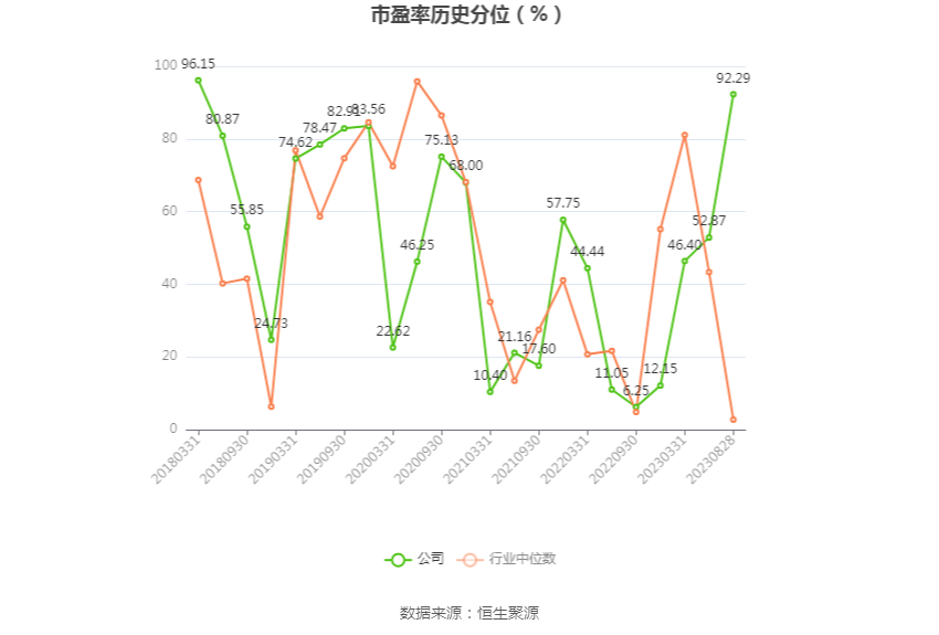 市盈率为负时,不显示当期分位数,会导致折线图中断。