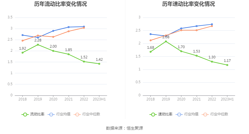 2023年上半年,公司流动比率为1.42,速动比率为1.17。