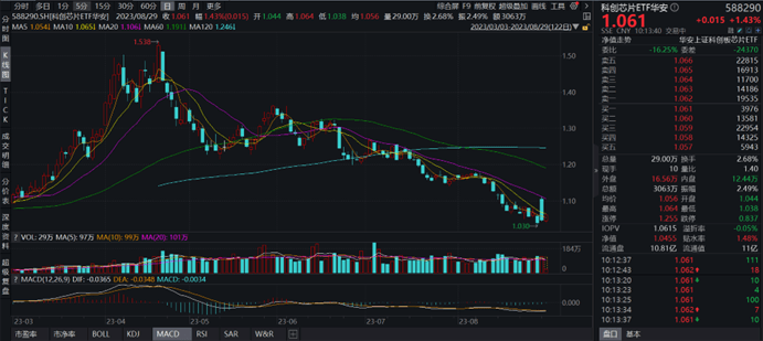 截至10:13,科创芯片ETF华安(588290)开盘持续走强,现已涨1.43%,成交额为3063万元,资金持续关注,市场交投活跃。