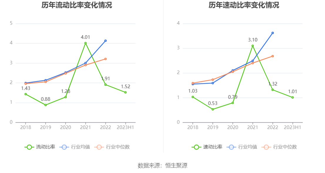 2023年上半年,公司流动比率为1.52,速动比率为1.01。