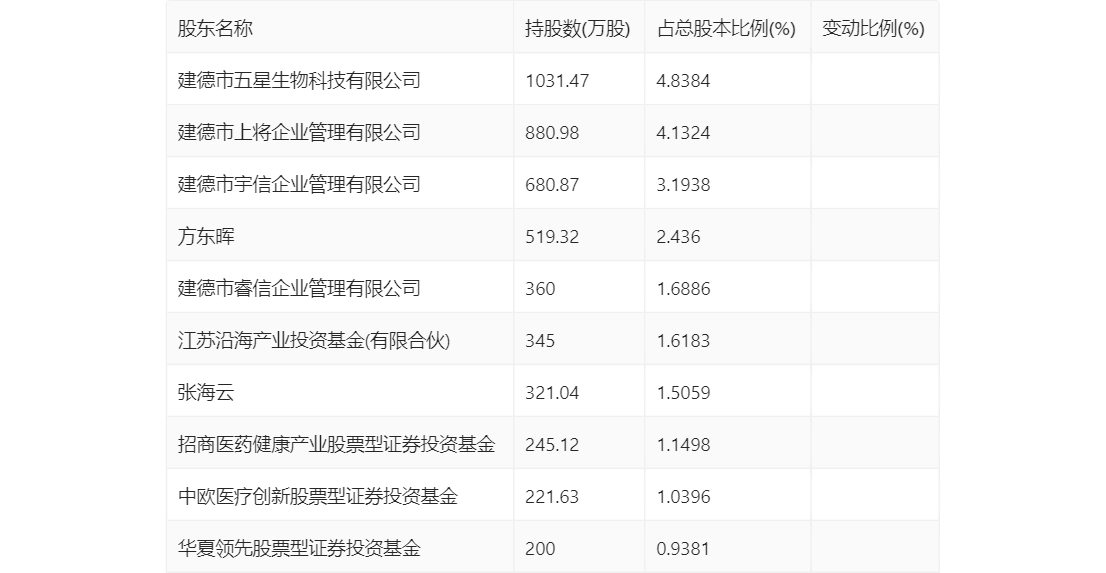 半年报显示,2023年上半年末的公司十大流通股东中,新进股东为招商医药健康产业股票型证券投资基金、中欧医疗创新股票型证券投资基金、华夏领先股票型证券投资基金,取代了一季度末的吉林敖东创新产业基金管理中心(有限合伙)、潘婕、怀信敦行1号私募证券投资基金。在具体持股比例上,张海云持股有所上升,建德市宇信企业管理有限公司、方东晖、江苏沿海产业投资基金(有限合伙)持股有所下降。