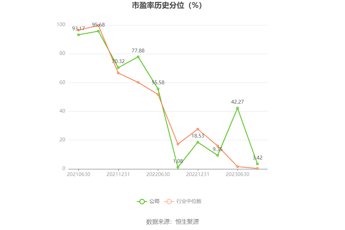 市盈率为负时,不显示当期分位数,会导致折线图中断。