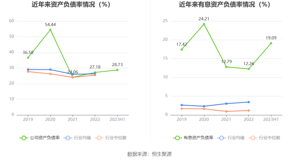偿债能力方面,公司2023年二季度末资产负债率为28.73%,相比上年末增加1.55个百分点;有息资产负债率为19.09%,相比上年末增加6.83个百分点。