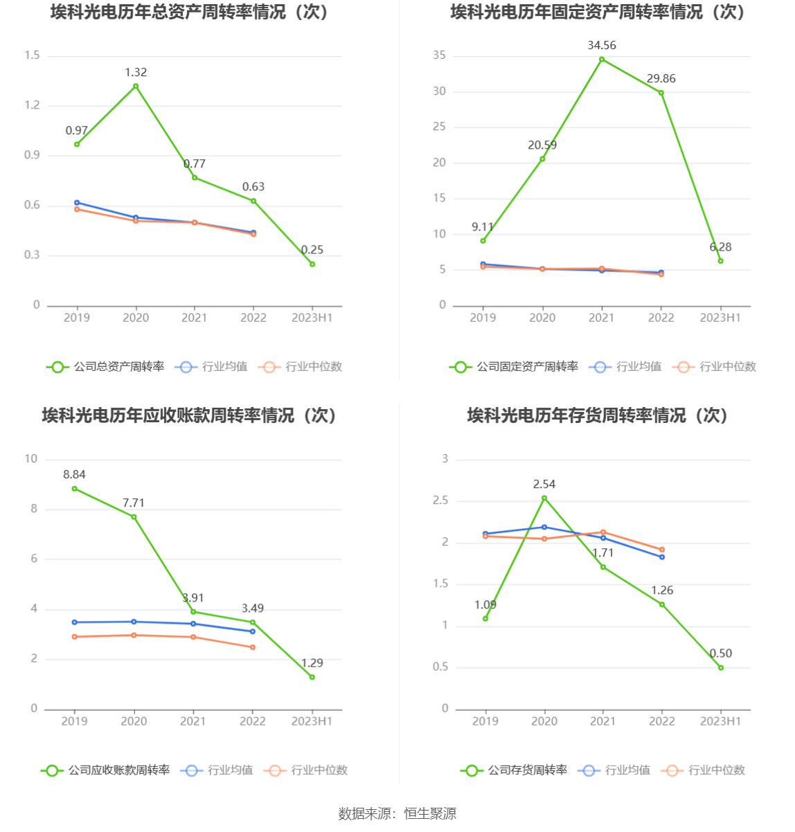 营运能力方面,2023年上半年,公司总资产周转率为0.25次,上年同期为0.37次(2022年上半年行业平均值为0.19次,公司位居同行业4/56);固定资产周转率为6.28次,上年同期为21.84次(2022年上半年行业平均值为1.96次,公司位居同行业4/56);公司应收账款周转率、存货周转率分别为1.29次、0.50次。