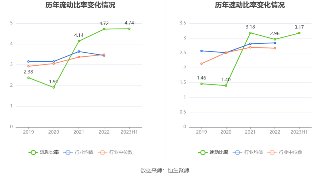 2023年上半年,公司流动比率为4.74,速动比率为3.17。