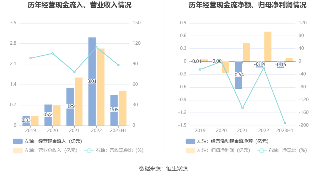 2023年上半年,公司营业收入现金比为88.55%,净现比为-191.84%。