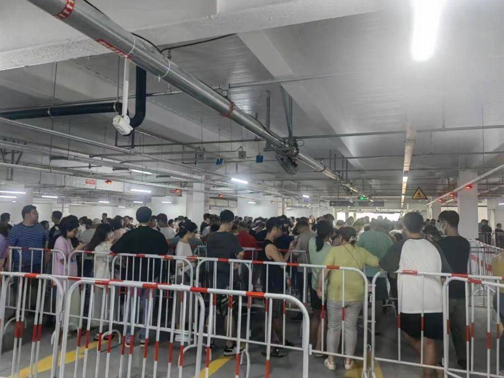 一位购物者对界面新闻记者表示,虽然知道人多,但不知道人这么多,车库排队要一个小时,还没有空调。