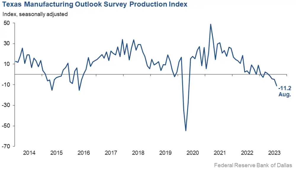 达拉斯联储最新的德州制造业调查数据显示,美联储在过去一年半里大举加息,对经济产生了负面影响。