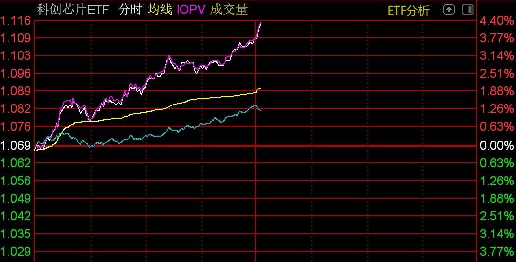 受盘面影响,跟踪上证科创板芯片指数的科创芯片ETF、科创芯片ETF华安涨超4%。