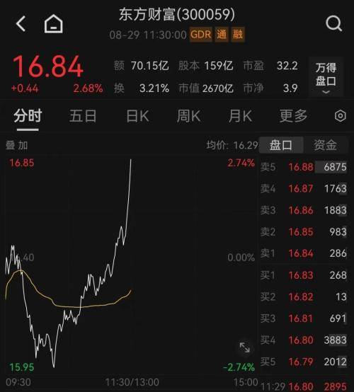 东方财富也由绿翻红,直线拉升。
